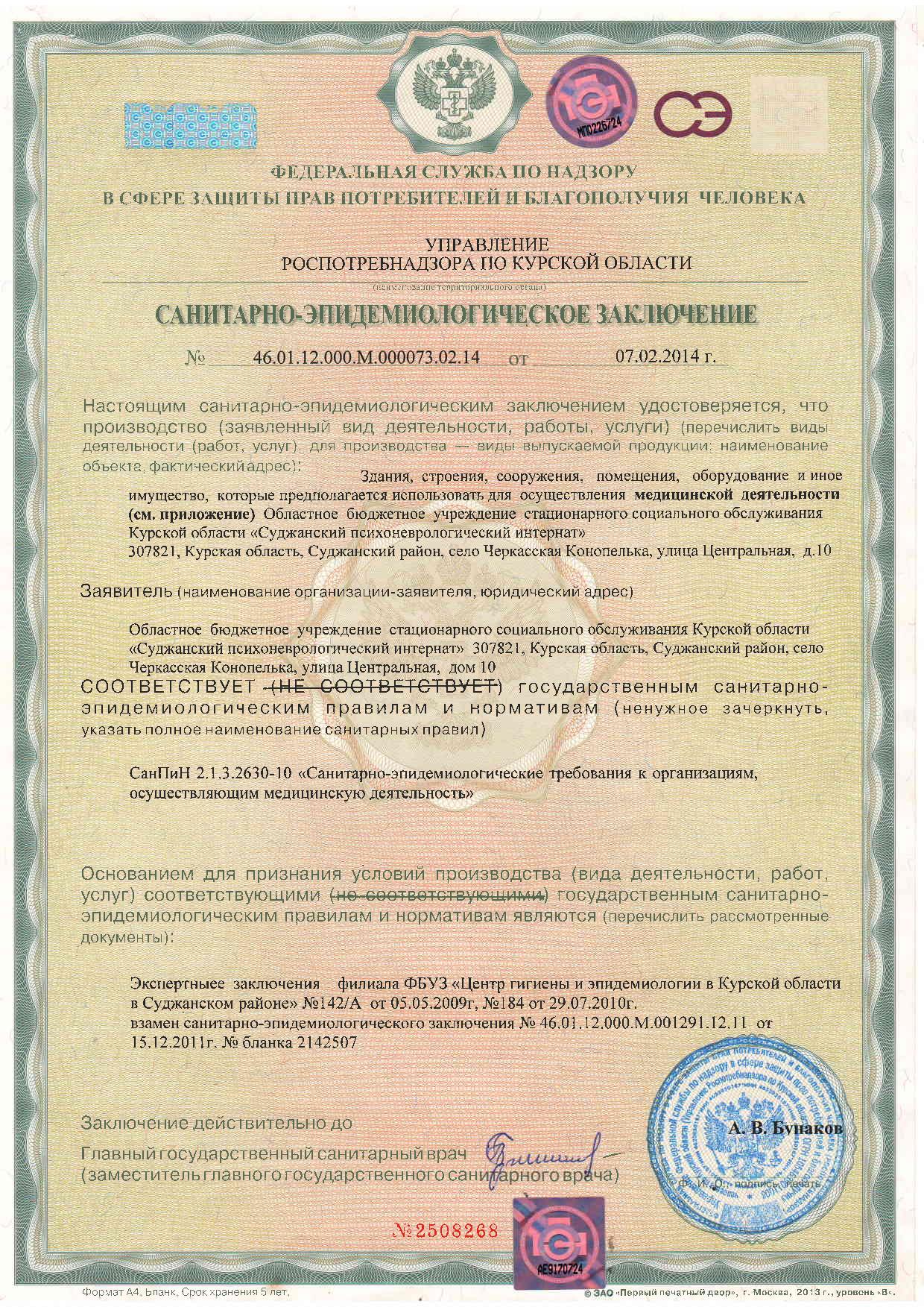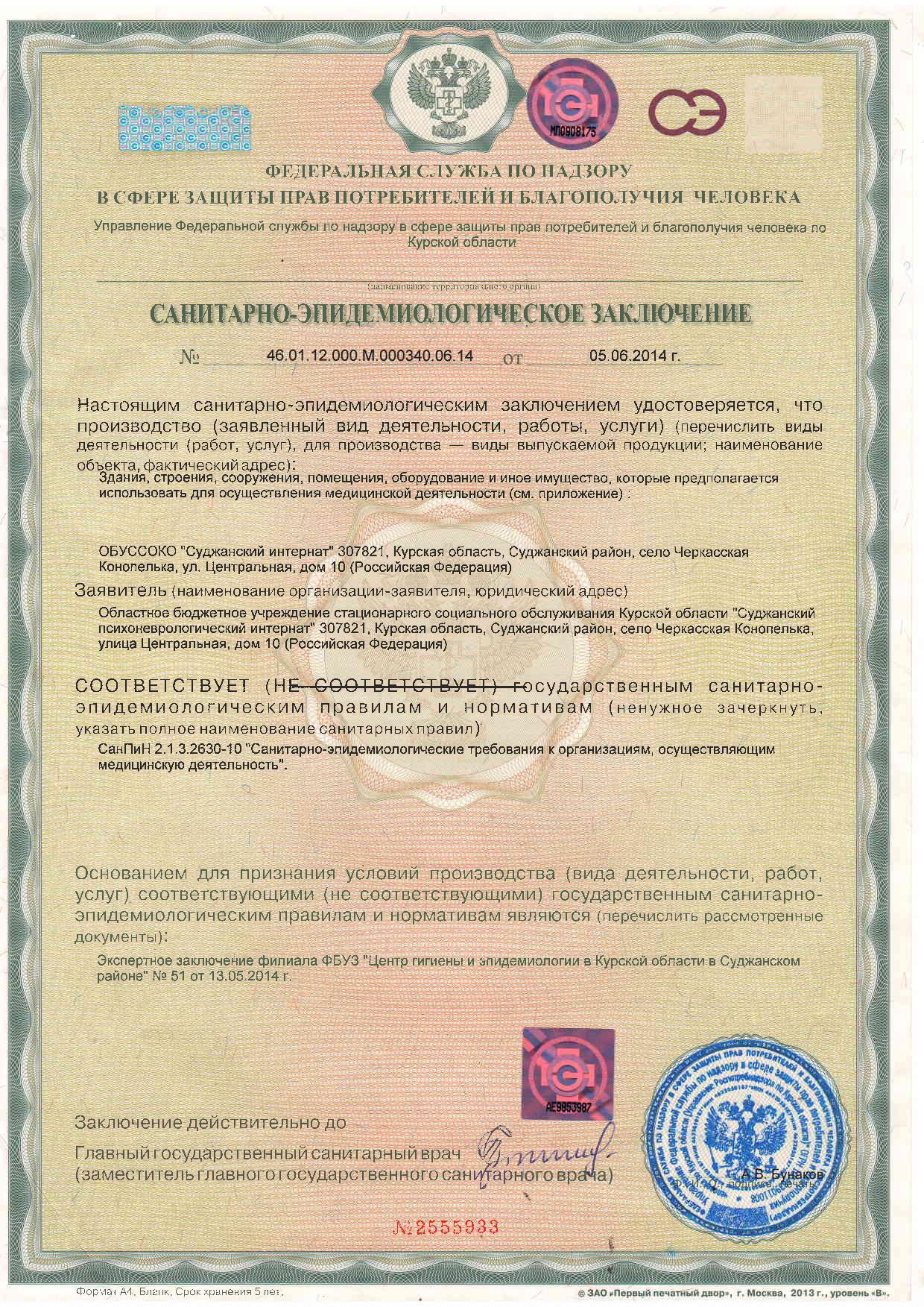 Санитарно-эпидемиологические заключенияОпубликовано: 21 апреля 2023 | Печать | E-mail | Просмотров: 3623 View the embedded image gallery online at: https://www.gsuson-internat.ru/index.php/dokumenty/uchreditelnye-dokumenty/sanitarno-epidemiologicheskie-zaklyucheniya#sigFreeId18422bff5e