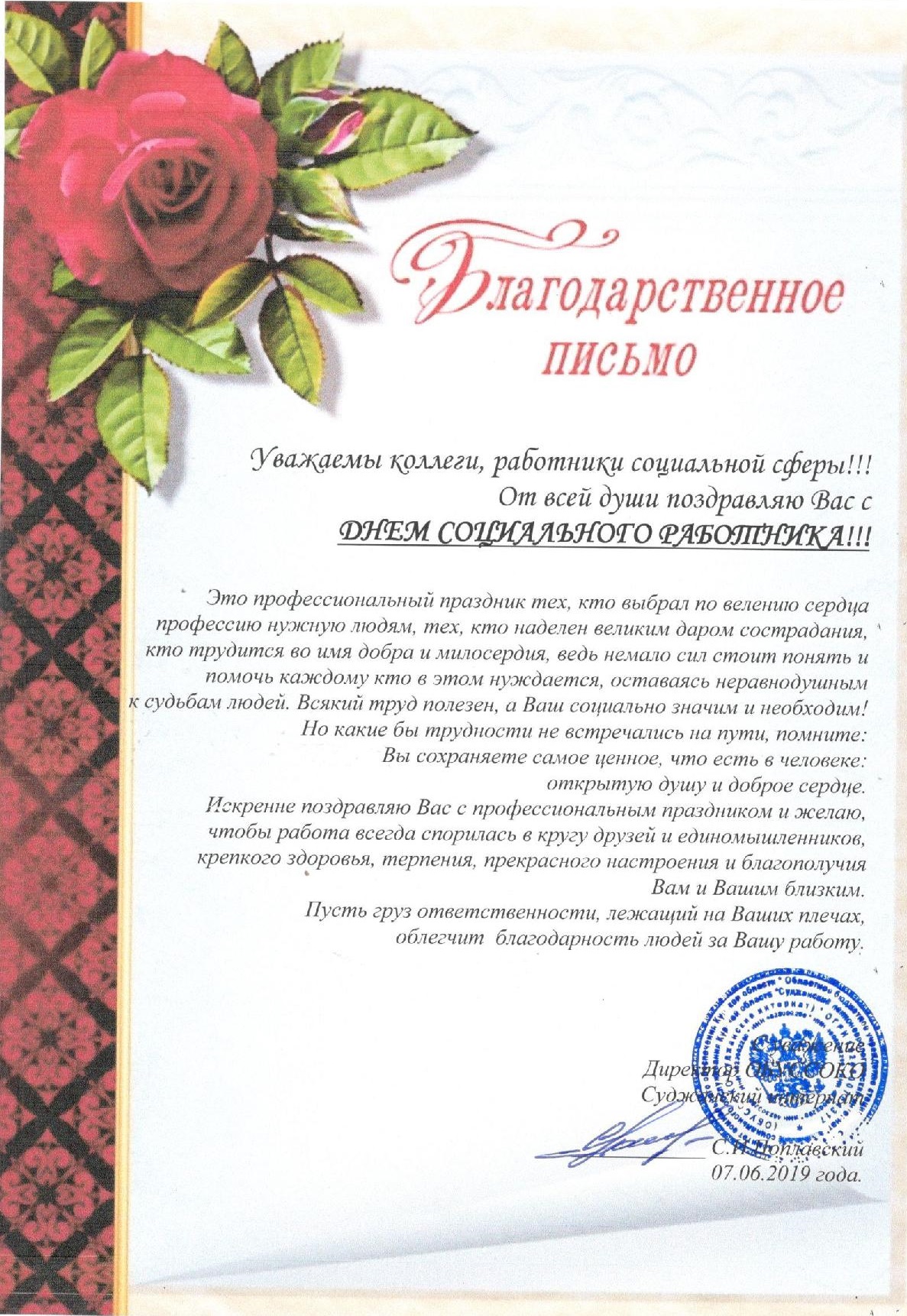 Благодарственное письмо!