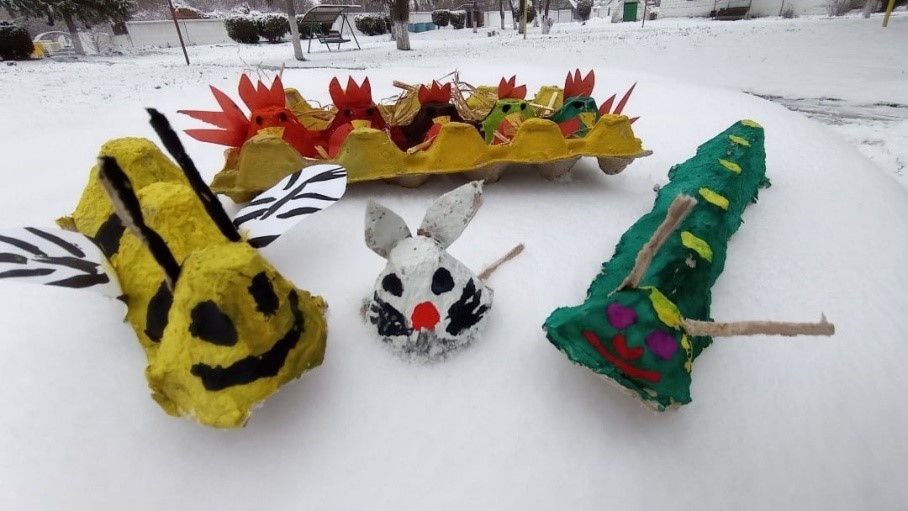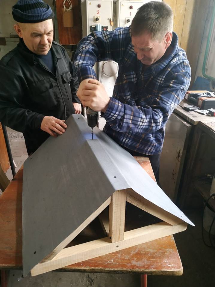 .Сын одного из сотрудников, смастерил кормушки для птичек прилетающих к нам в дом