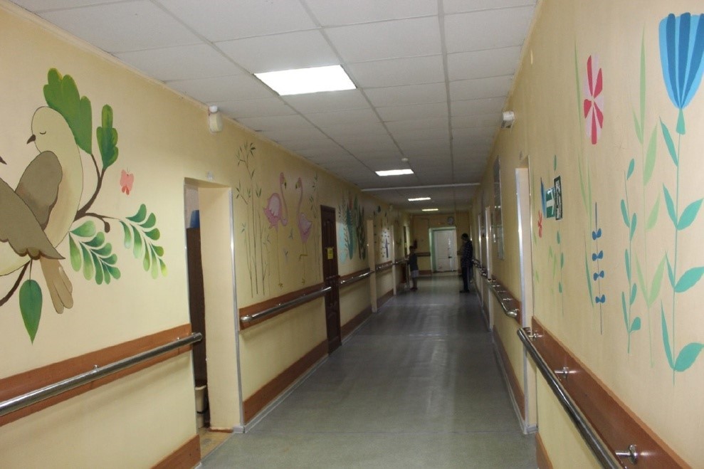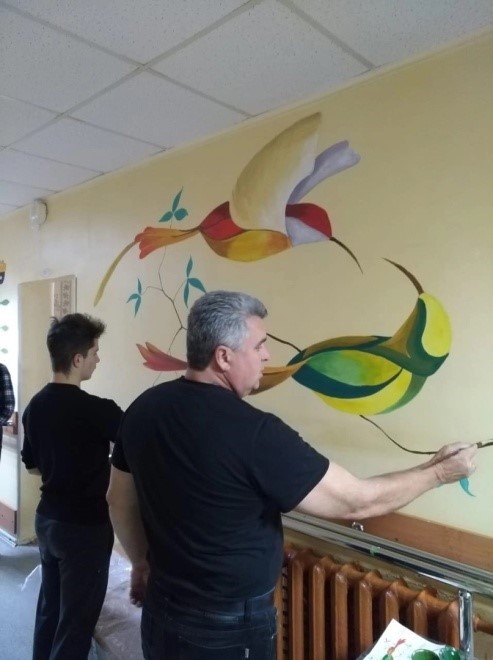 расписывают стены в коридоре отделения интенсивного ухода. Получается фантастически красиво, жители очень довольны и благодарны