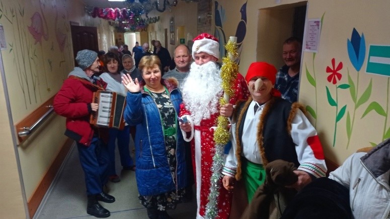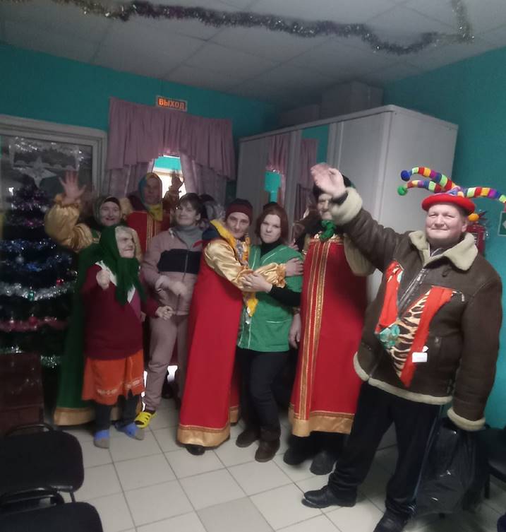 Утро сегодняшнего дня началось с поздравлений с праздником от волонтёров. Спасибо всем неравнодушным жителям нашей страны и не только - за сказочные поздравления доставленные нам почтой России. По давней традиции на старый новый год девушки и парни колядуют, вот и мы чтим традиции. Природа одарила нас серебром снежинок, поэтому прежде чем ряженые пошли с поздравлениями во все корпуса нашего дома, необходимо было почистить от снега дорожки, а уже потом нарядные активисты нашего дома отправились в путь. Колядки, веселые песни под гармонь подняли настроение всем проживающим дома, а также порадовали сотрудников