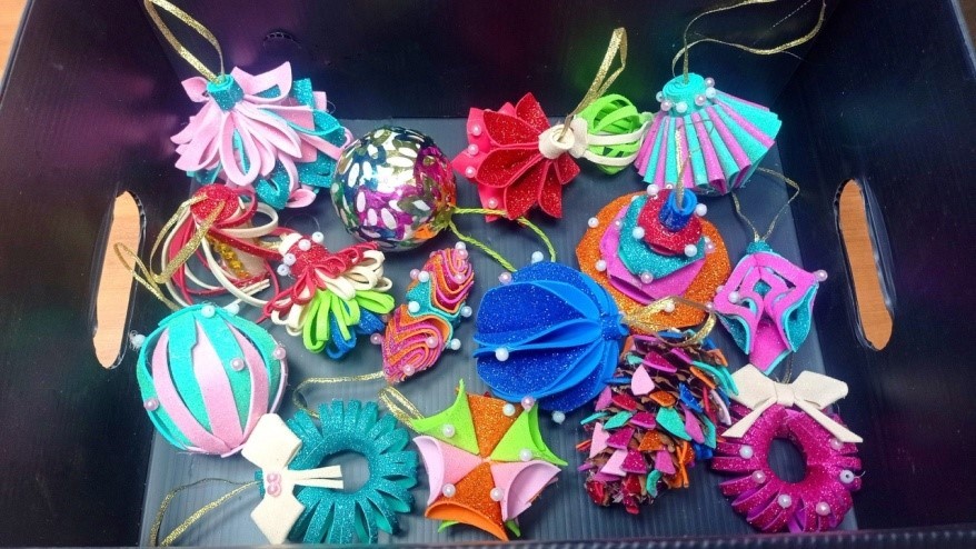 Проживающие нашего дома, в рамках дневной занятости, на кружке "умелые руки" мастерят поделки, что бы потом их подарить маломобильным проживающим отделения интенсивного ухода. Пожилые люди очень радуются подаркам и с удовольствием украшают ими свои комнаты.