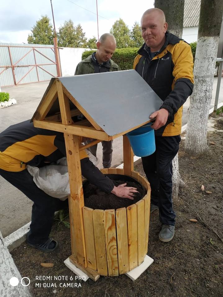 , пора пробуждения природы и праздничного состояния души. В предверии цветущей поры наши золотые ручки смастерили декоративную клумбу-колодец. В неё женщины высадят цветы![]()