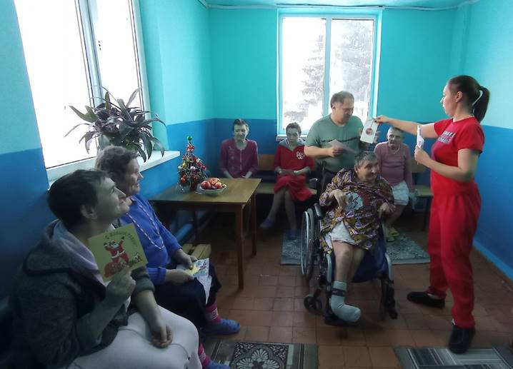 Соревнования в команде объединяют и сплачивают ребят. После программы, дружный коллектив участников, поздравили проживающих отделения интенсивного ухода с декадой инвалидов, самые важные, позитивные, пожелания звучали в стенах нашего дома, а заранее приготовленные поделки и открытки стали прекрасными дополнениями к поздравлениям.