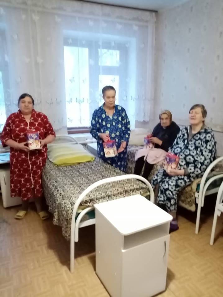 от работников дома, от проживающих мужчин и конечно от неравнодушных людей. Небольшие призенты очень порадовали наших женщин,