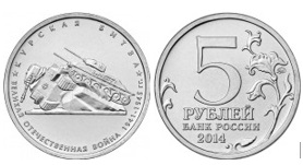 В 2014 году Банком России выпущена памятная юбилейная монета серии «70-летие Победы в Великой Отечественной войне 1941-1945гг.» номиналом 5 рублей «Курская битва». На реверсе монеты рельефное изображение скульптурной композиции «Танковое сражение под Прохоровкой. Таран», вдоль канта - надписи, разделенные двумя звездочками, вверху: «КУРСКАЯ БИТВА», внизу: «ВЕЛИКАЯ ОТЕЧЕСТВЕННАЯ ВОЙНА 1941-1945 гг.».